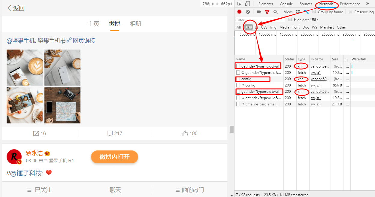 使用Chrome打开页面,右键点击检查,选中Network查看浏览器与服务器之间的真实请求与响应,过滤XHR页签可以看到类型为xhr的请求,即为ajax请求。